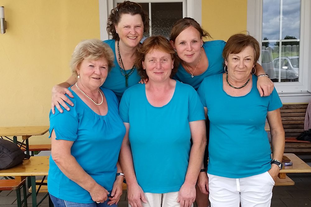 Fototext Hahn: Schaffen als Landesligameister den Aufstieg in die Bayernliga: die Damen des EC Irging-Simbach mit von links Edeltraud Bauer, Maria Auer, Hildegard und Christina Spielbauer sowie Christine Brandstetter.