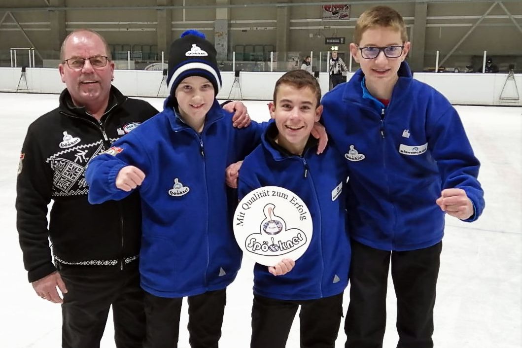Jubeln über die Bayerische Meisterschaft in der Schüler U 14. Von links Betreuer Josef Straubinger, Martin Kreuzeder, Marco Straubinger und Florian Kreuzeder.