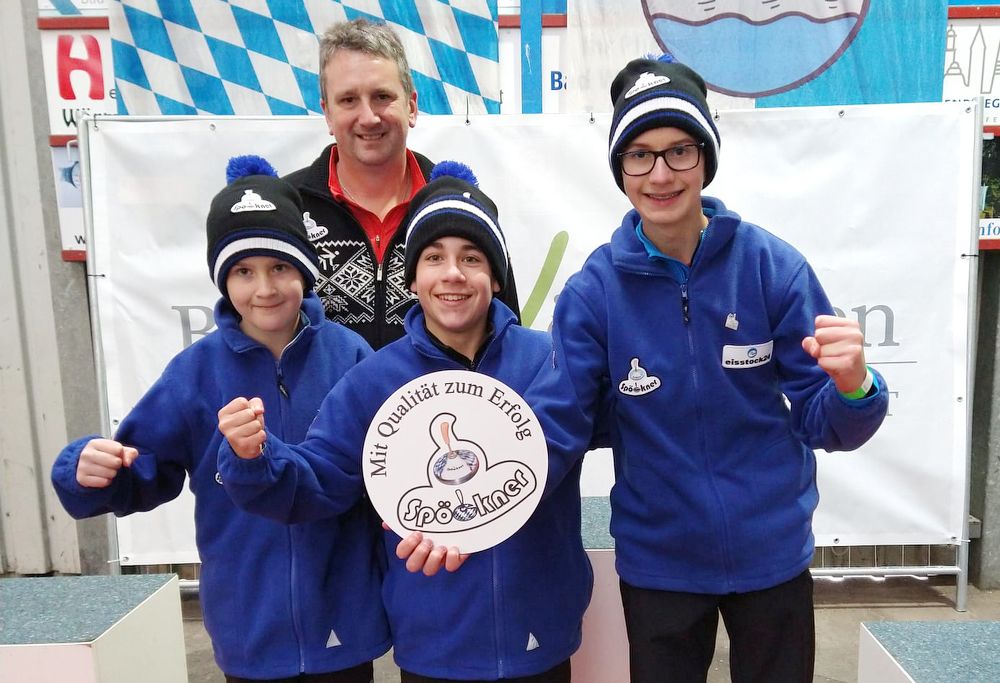 Erfolgreich für den es ESC Rattenbach in der männlichen U 14: von links Martin Kreuzeder, Marco Straubinger und Florian Kreuzeder sowie Trainer Christoph Kreuzeder.