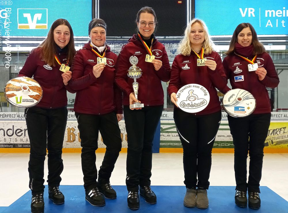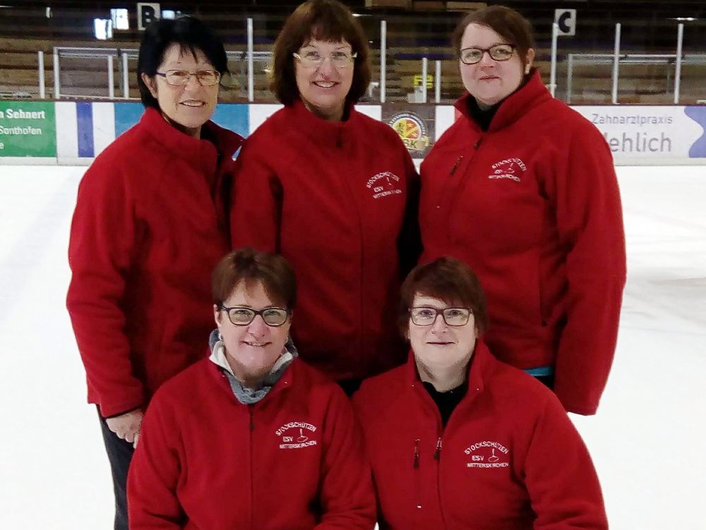 Mit einer Galavorstellung sicherten sich die Damen des SV Gumpersdorf erstmals den Titel auf Winterbahnen. Von links Anna Hinteraicher, Elisabeth Platzer, Maria Empl, Uschi Zerbin und Regina Brandmüller.