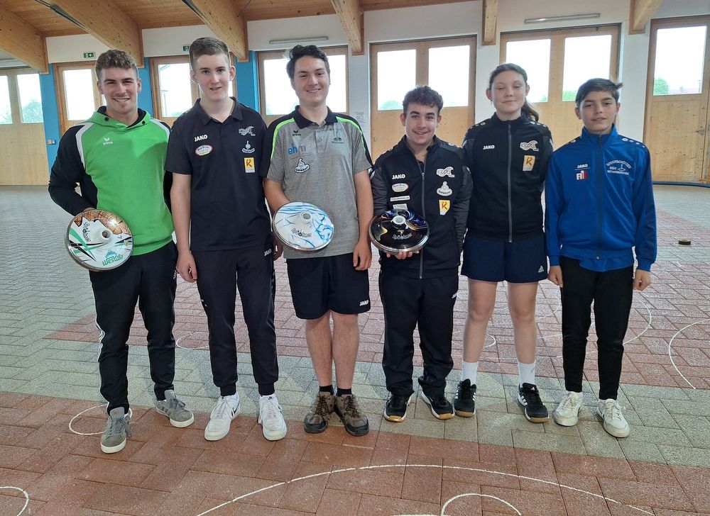 Bezirksmeister und Medaillengewinner – von links Simon Huber, Martin Kreuzeder, Jonas Wimmer, Marco Straubinger, Eva Kreuzeder und Korbinian Hahn
