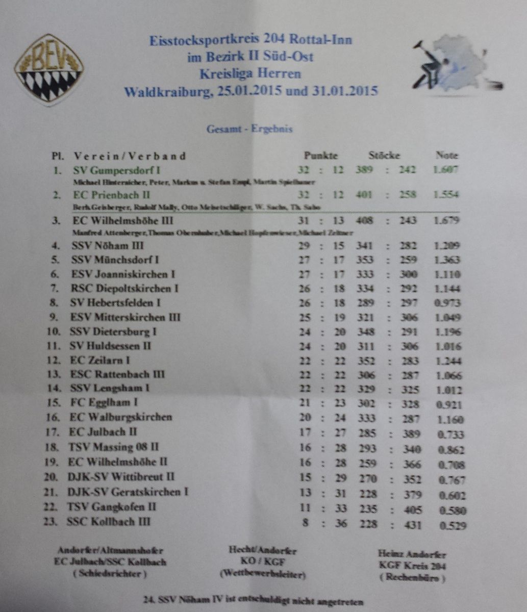 Endergebnis der Kreisliga