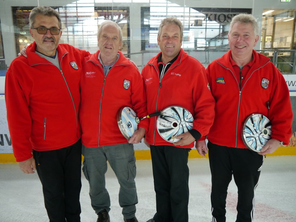 Kreispokalsieger bei den Alten Herren der EC Irging Simbach von links mit Werner Huber, Rudi Ostwinkl, Johann Spateneder und Gottfried Bauer.