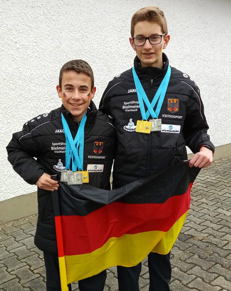 Mit einem glänzenden EM Debüt können die beiden jüngsten Akteure Marco Straubinger und Florian Kreuzeder, beide vom ESC Rattenbach, die Titelkämpfe zu den Akten legen. Nicht weniger als fünf Medaillen können sie in ihren mittlerweile gut gefüllten Medaillenschrank hinzufügen. Herausragend war natürlich der Titel im Mannschaftsspiel der U 16. Florian Kreuzeder und Marco Straubinger, Hansi Obermayer vom EC Lampoding, Lukas Vorderwester, ESV Wang und Paul Lämmlein EC Feldkirchen besiegten dabei im Finale Österreich mit 19:7. Platz drei ging an Italien, die Slowenien mit 18:12 besiegten.