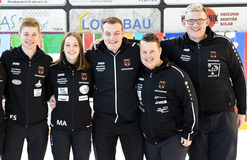 Ebenfalls erfolgreich für den Stocksportkreis Stefan Empl und Noel Sabo holten WM Silber in der U 23- von links Stefan Empl, Alina Mayer, Noel Sabo , Marco Rossberger und Daniel Steber