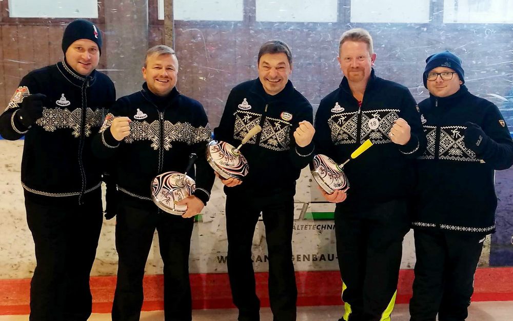 Mit einer starken Leistung präsentierte sich der ESC Rattenbach auch bei der Zwischenrunde in Liga II in Berchtesgaden und kann beim Finale in Buchloe den Aufstieg in die Erste Bundesliga realisieren – von links Christian Hoffmann, Thoms Leibinger, Rainer Greil, Holger Kreuzeder und Rainer Altmannshofer.