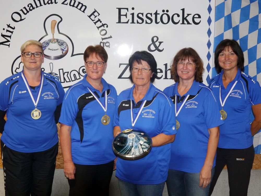So spielte das Quartett mit Birgit Wagner, Barbara Wimberger, Renate Schreiner, Claudia Eder sowie Marianne Hahn von den ersten Schüssen an bildsauberen Eisstock von der Anspielerin bis hin zur vierten Position. Gleich zum Auftakt wartete mit dem TUS Engelsberg einer der großen Favoriten auf den Tagessieg auf das Team. Ein harterkämpfter 4:3 Sieg in einer dramatischen Begegnung war der Anfang einer erfolgreichen Meisterschaft. Natürlich gab dieser doppelte Punktegewinn großes Selbstvertrauen und weitere Siege gegen den ASV Eggstätt 8:5, TSV Massing 10:6, EV Rosenheim 6:4, TSV Hartpenning 7:4, EC Irging Simbach 6:4 und dem FC Landsberied mit 5:2 brachten die Formation überlegen an die Tabellenspitze. Auch eine 3:7 Niederlage gegen den EKC Rottach Egern brachte nur wenig Nervosität in die mittlerweile abgebrühte Truppe und mit weiteren vier Siegen in den Abschlussbegegnungen war die Meisterschaft und der Wiederaufstieg in die I. Bundesliga perfekt. Mit 22:2 Punkten behauptetet man sich knapp vor dem TUS Engelsberg 21:3 Punkte, der ebenfalls wieder in die Bundesliga zurückkehrt. Zahlreiche Spiele waren nichts für schwache Nerven, denn sie wurden erst mit den letzten Schüssen entschieden. Wie sich mehrmals herausstellte war dabei die Defensive Spielweise mehrmals die absolut richtige Taktik.