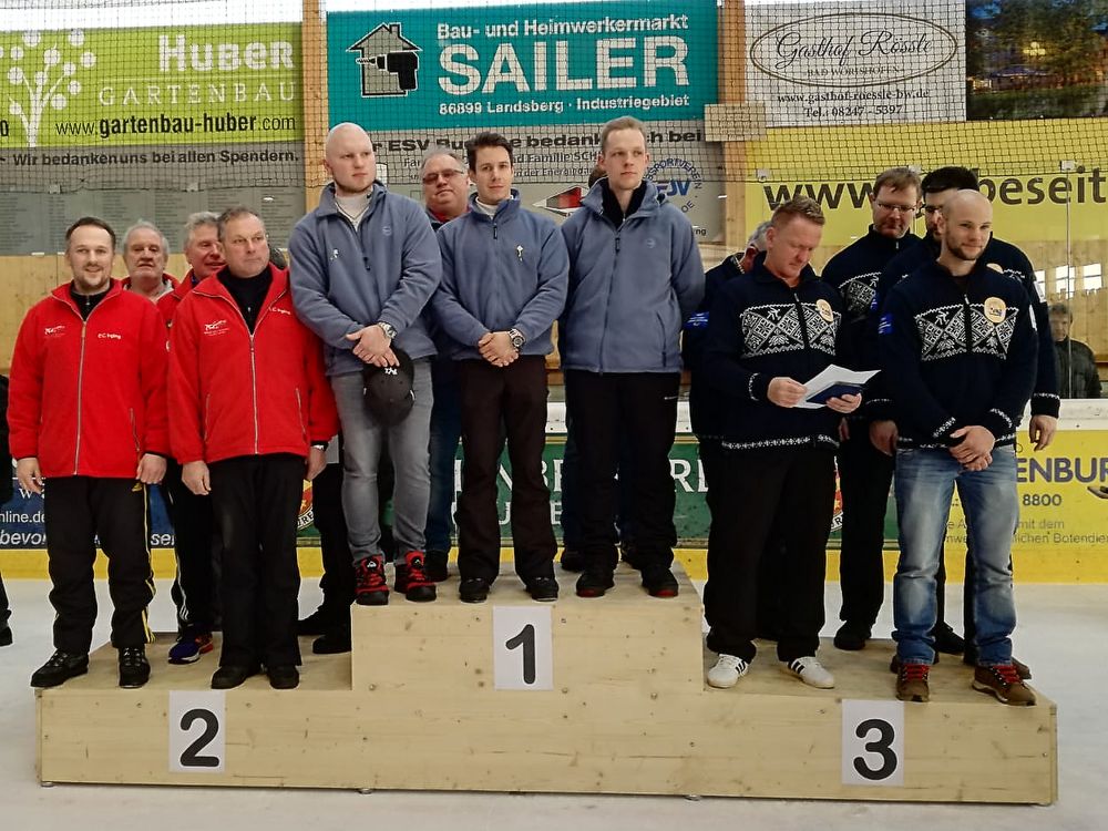 Die ersten drei in der Bayernliga Süd- von links der EC Irging Simbach mit den Schützen Michael Huber, Rudi Ostwinkl, Gottfried Bauer und Johann Spateneder, in der Bild Mitte der EC Feldkirchen und rechts der dritte EC Antdorf